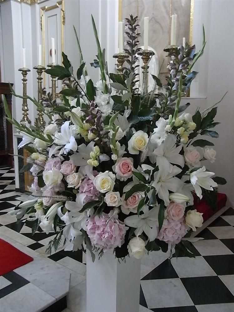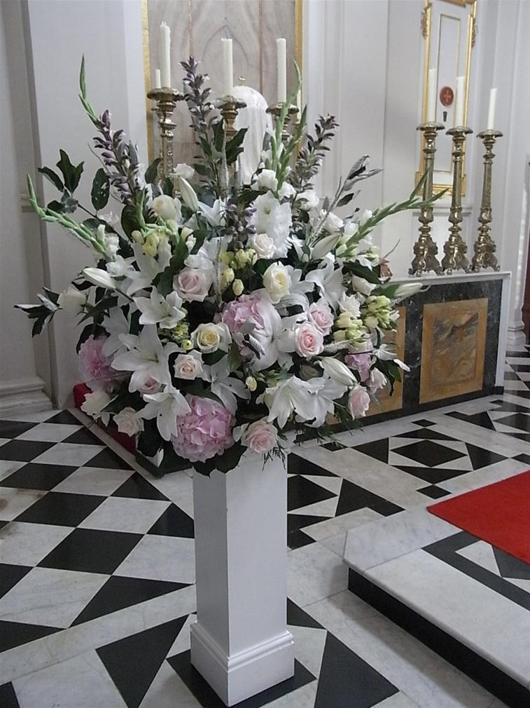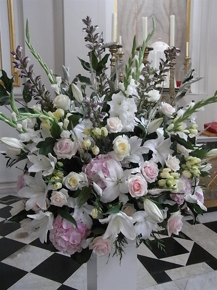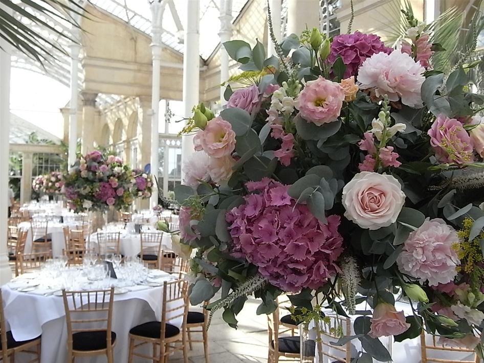 We couldn’t have wished for a better day yesterday for the wedding of Kim & Alex. Lots of sunshine, a cooling breeze, and two of my favourite venue’s to decorate. Champagne creams and antique dusky pinks reflected this glorious summer’s day perfectly. Soft and blousy traditional flora varieties complemented the beautiful interiors of both the Catholic Church and the great conservatory at Syon House.