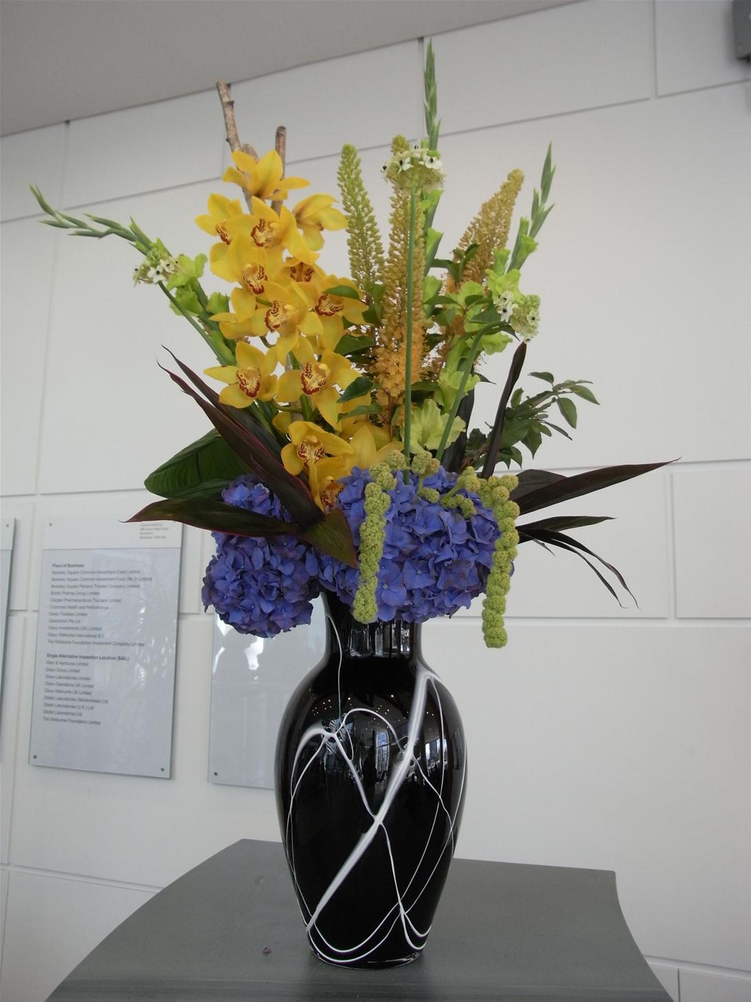 Chic modern vase arrangements can enhance the overall presentation of reception areas, boardrooms and meeting rooms, thus creating a warm and welcoming atmosphere. Flowers can help build customer relationships in a uniquely personal way and can add value to a selling proposition. Corporate Floral Displays we have designed in our flower shop Kew, Richmond upon Thames.