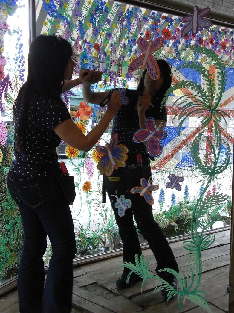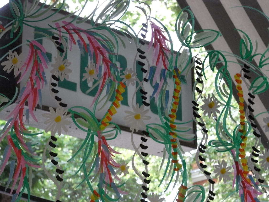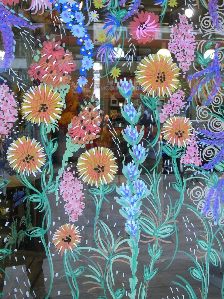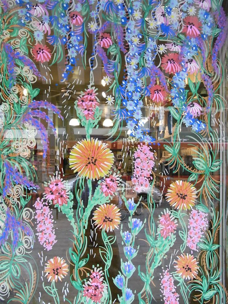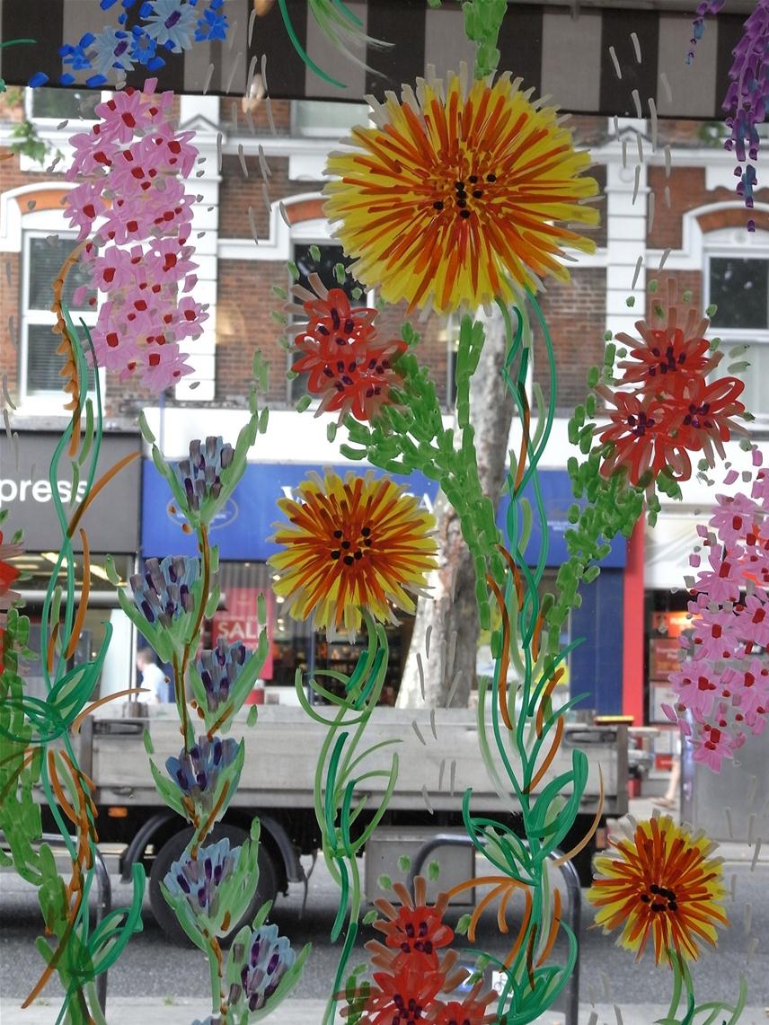 In full support and celebrating Great Britain’s huge success in the Olympics we have splashed out painting our window in true Brit style. Centred you can see the Union Jack flag which is surrounded in flowers inspired by the colourful seasonal selection we have on offer every day. It really is worth a look!
