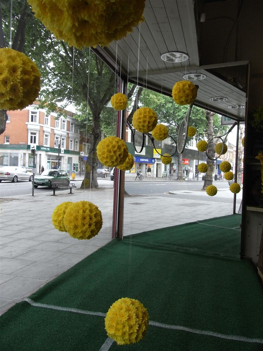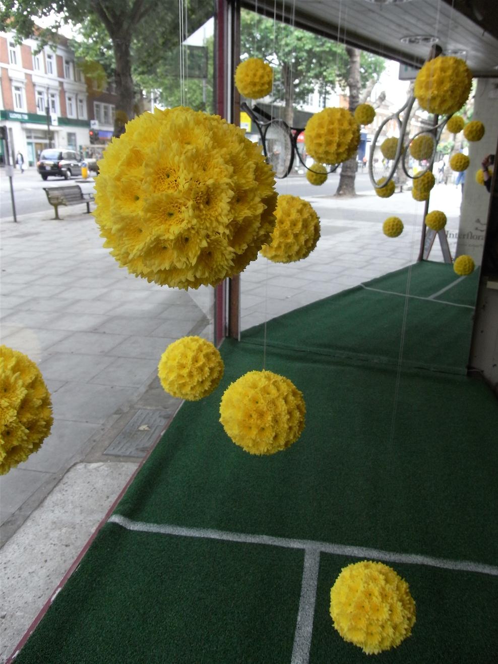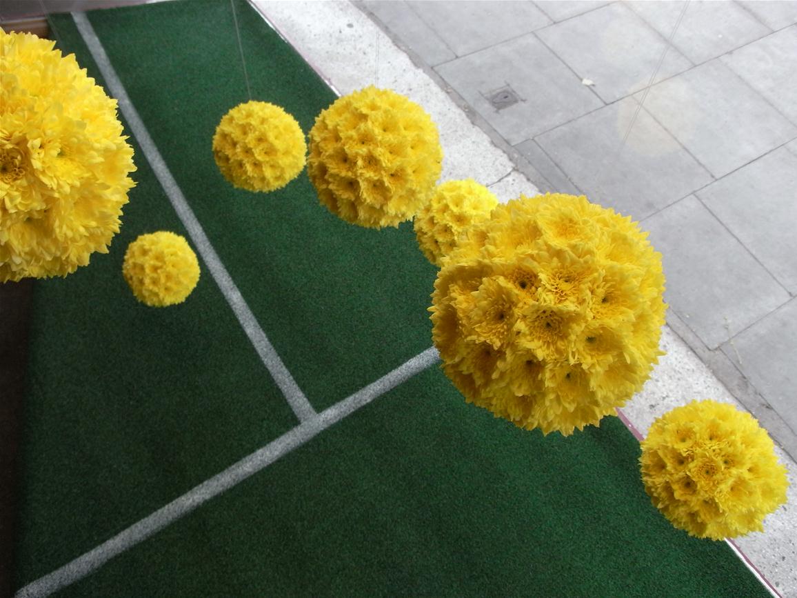 In true British fashion we’re all gunning for Andy Murray to win Wimbledon this year here at Pot Pourri. We have created yellow sphere’s from heads of double Chrysanthemum, suspending them over chalk lined astro turf. Come by to have a look or pop in to play with our beautiful selection of British grown flowers instead!