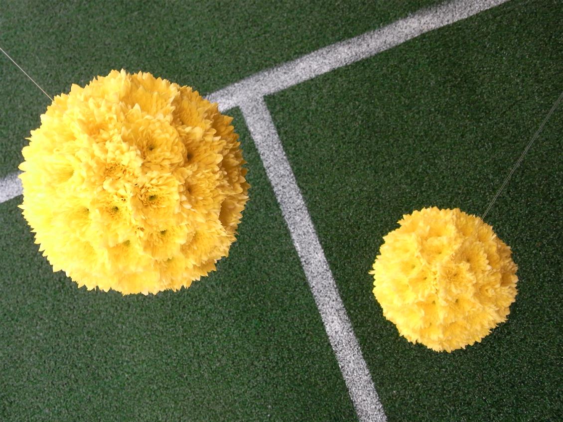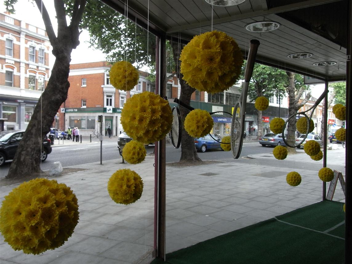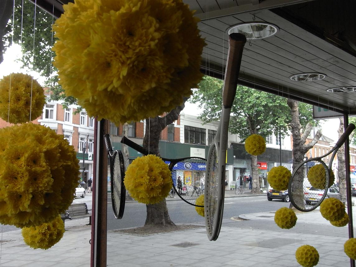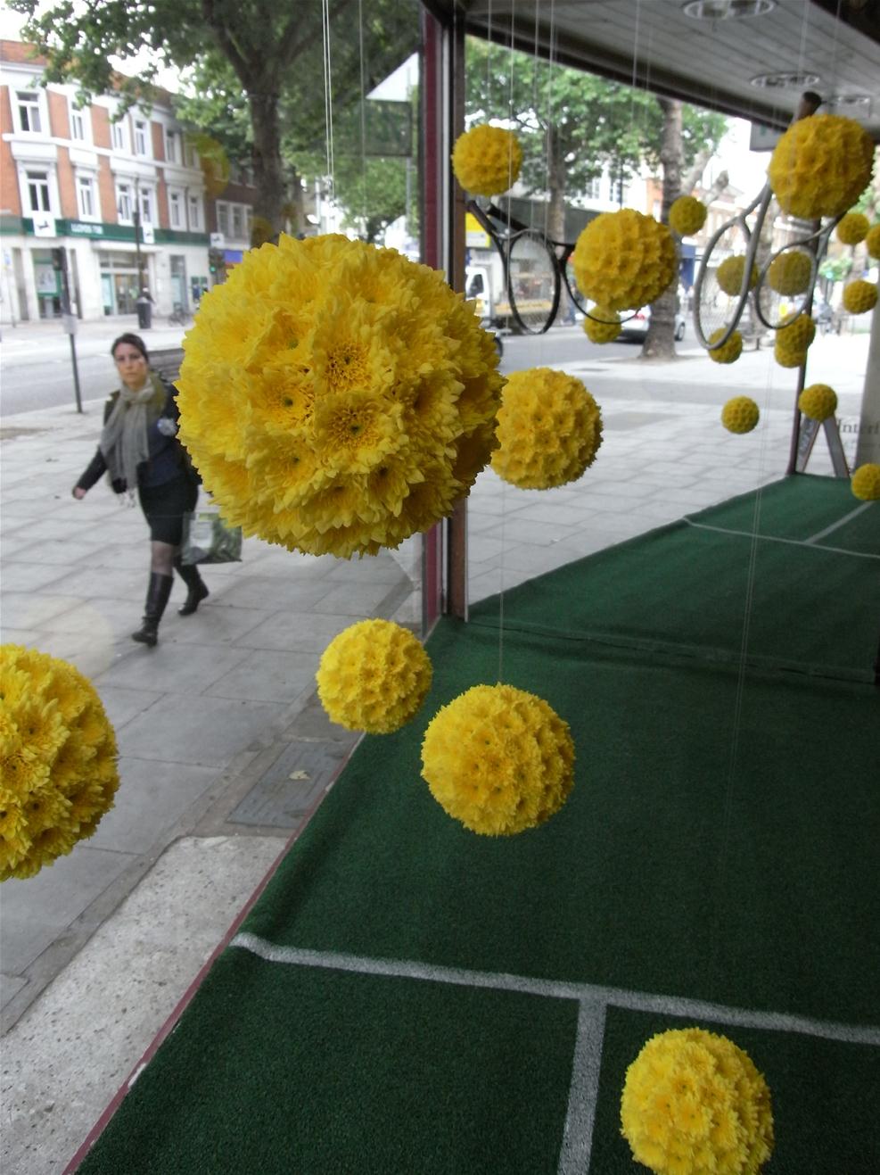 In true British fashion we’re all gunning for Andy Murray to win Wimbledon this year here at Pot Pourri. We have created yellow sphere’s from heads of double Chrysanthemum, suspending them over chalk lined astro turf. Come by to have a look or pop in to play with our beautiful selection of British grown flowers instead!