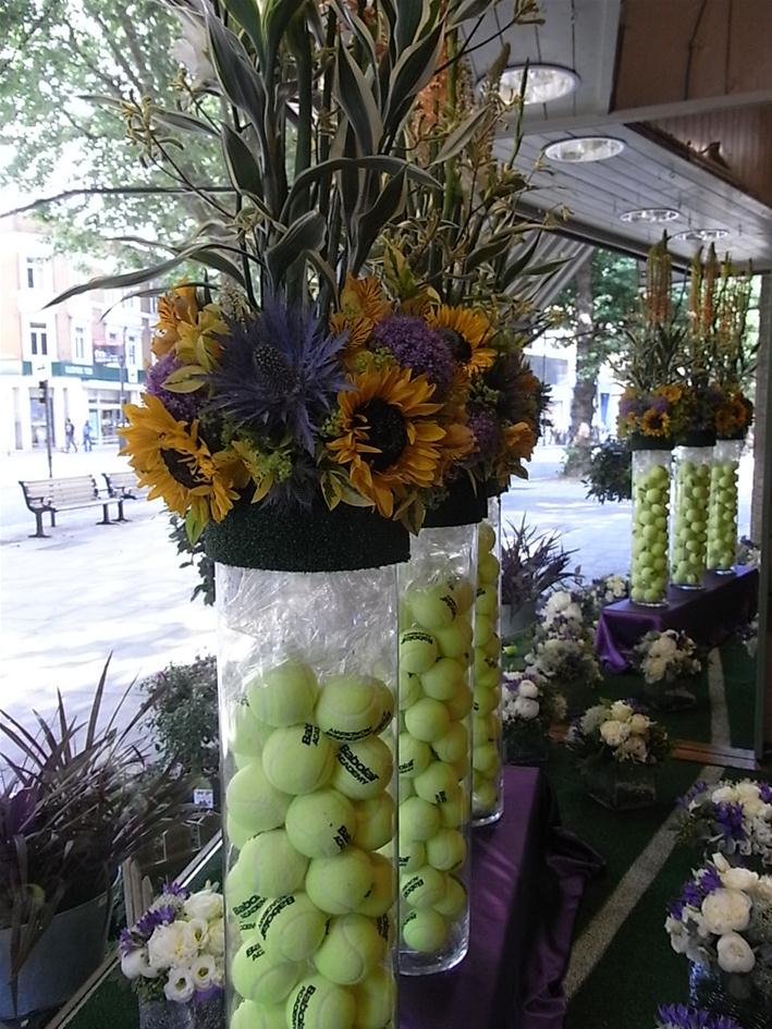 For this years Wimbledon Window display we have combined beautiful seasonal flower arrangements on top of vases filled with tennis balls. Celebrating floral abundance at this time of year and our loved British Tennis Championship. For the enthusiasts we are also running a competition to guess the men’s single and women’s single winners. Simply write the name of your prediction on a tennis ball and drop it in our window. When the winners have won we will draw from the correctly predicted tennis balls two lucky winners who will both win a beautiful bouquet of flowers to the value of £70. Good luck Andy!