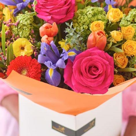A handcrafted bouquet made by a local florist using the freshest blooms. This classic bouquet will feature flowers in vibrant shades inspired by spring. Think tangerine, cerise, chartreuse and ochre.