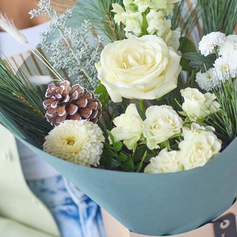 A beautiful little gift box of fresh flowers in soft muted shades, chosen and arranged by hand by a local florist.
